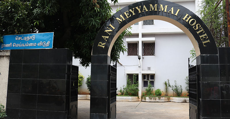 In 1976, Chettinad Rani Meyyammai Boarding house was recognized to be responsible for a home away from home. Patron Padma Bhushan Dr. Rajah Sir M. A Muthiah Chettiar donated the corpus to create the Hostel at the behest of Mrs. Madhuben Shah, W/o. Shri K. K Shah, and previous Governor of Tamil Nadu.